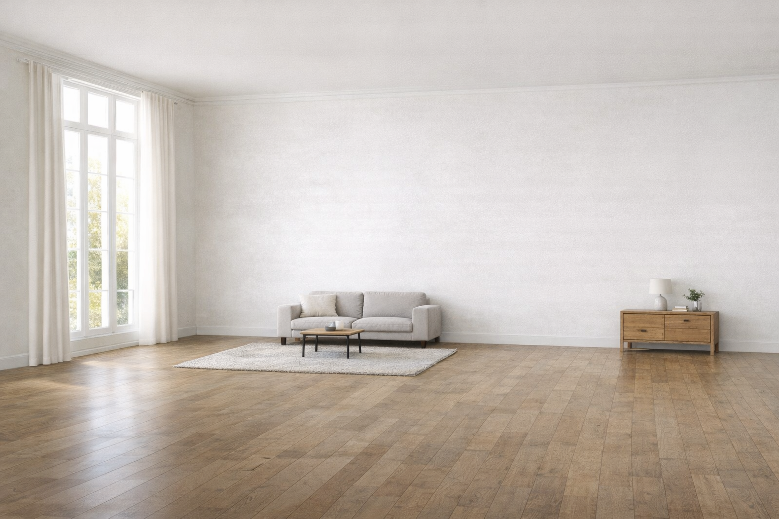 W dużych wnętrzach skala działa inaczej. Jeśli sofa jest zbyt krótka, stolik zbyt drobny, a komoda mała w stosunku do długości ściany, salon zaczyna wyglądać jak aranżacja prowizoryczna — jakby meble zostały przeniesione z innego mieszkania i ustawione bez planu. Pojawia się też problem proporcji: ściany, okna i wolna podłoga dominują nad wyposażeniem, a wnętrze traci równowagę wizualną.