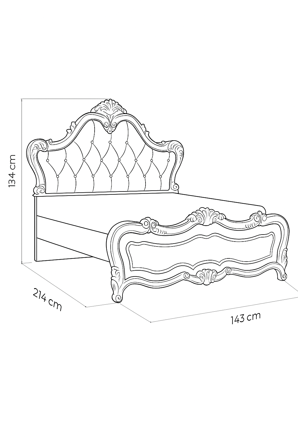Łóżko Charme to symbol elegancji, który łączy w sobie luksusowy styl glamour z klasyczną francuską estetyką. Wykonane z solidnej płyty MDF i drewna, oferuje stabilną konstrukcję oraz wyjątkowy komfort użytkowania. Centralnym punktem łóżka jest imponujące, wysokie wezgłowie z charakterystycznym pikowaniem w stylu chesterfield, tapicerowane miękką, połyskującą tkaniną w odcieniu szampana. Ozdobne rzeźbienia o kwiatowych i roślinnych motywach, umieszczone zarówno na wezgłowiu, jak i na przednim panelu łóżka, dodają mu wyrafinowanego charakteru, sprawiając, że mebel przyciąga wzrok i staje się główną ozdobą sypialni. Profilowane linie ramy oraz misternie wykonane detale tworzą harmonijną kompozycję, idealnie pasującą do aranżacji w stylu pałacowym, klasycznym lub glamour. Dzięki swojemu majestatycznemu wyglądowi, Charme nie tylko zapewnia wygodę snu, ale również wprowadza do wnętrza atmosferę luksusu i wyrafinowania. Łóżko Charme będzie doskonałym wyborem do sypialni, w której kluczowa jest dbałość o detale oraz chęć stworzenia przestrzeni emanującej wyjątkowym stylem i ponadczasowym pięknem.