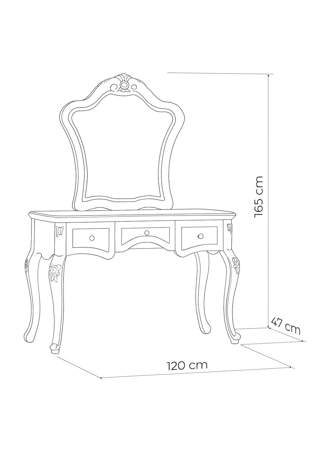 Toaletka z lustrem Paloma to wyjątkowy mebel, który wprowadza do wnętrza powiew francuskiej elegancji i uroku stylu glamour. Wykonana z wysokiej jakości płyty MDF oraz drewna, cechuje się solidnością, a przy tym delikatną estetyką, która idealnie komponuje się z klasycznym wystrojem. Jej charakterystyczne, delikatnie wygięte nogi z dekoracyjnymi zdobieniami nadają całej konstrukcji lekkości, jednocześnie podkreślając bogaty styl inspirowany francuskimi wnętrzami.