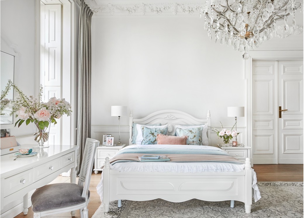Łóżko do sypialni Caroline to kwintesencja stylu angielskiego, zostało zaprojektowane z myślą o miłośnikach elegancji i klasycznych rozwiązań wnętrzarskich. Wykonane z solidnej płyty MDF, z drewnianymi nogami, które dodają mu stabilności, gwarantuje komfort użytkowania i trwałość. Łóżko przyciąga wzrok subtelnymi zdobieniami i delikatnie zaokrąglonymi liniami, które nadają mu lekkości oraz wyjątkowego uroku. Wezgłowie i przedni panel łóżka są zdobione dekoracyjnymi frezowaniami oraz stylowymi rzeźbieniami, które podkreślają angielski charakter mebla, jednocześnie wprowadzając harmonię i wyrafinowanie do każdej sypialni. Białe łóżko Caroline to nie tylko estetyka, ale również funkcjonalność — wysoka konstrukcja zapewnia wygodny dostęp oraz przestrzeń pod łóżkiem. Odcień złamanej bieli idealnie komponuje się z wnętrzami w stylu klasycznym, vintage czy shabby chic, dodając im blasku i elegancji. To łóżko będzie doskonałym wyborem dla osób, które cenią sobie nie tylko wygodę snu, ale również chcą wprowadzić do swojej sypialni odrobinę angielskiego szyku i ponadczasowego stylu.