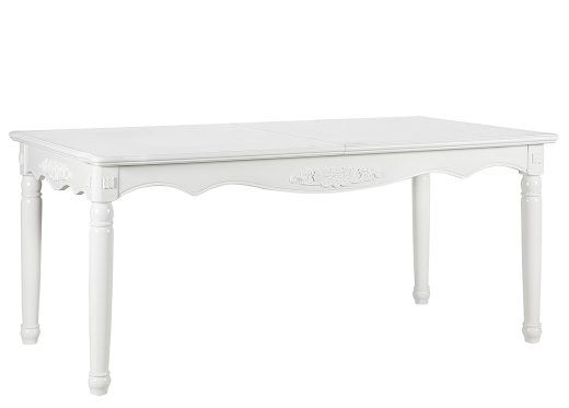 Stół Abigail to kwintesencja angielskiego stylu i funkcjonalności w Twoim domu. Ten elegancki mebel, wykonany z wysokiej jakości płyty MDF w kolorze złamanej bieli, z pięknymi drewnianymi nogami, wnosi do wnętrza nutę ponadczasowego uroku. Wyróżniające się subtelne zdobienia na krawędziach i toczone nogi nadają mu charakter klasycznego angielskiego designu. Stół Abigail to nie tylko piękno. Rozkładany blat pozwala na dostosowanie wielkości stołu do bieżących potrzeb, czyniąc go idealnym rozwiązaniem zarówno na codzienne posiłki, jak i większe przyjęcia rodzinne. Solidna konstrukcja gwarantuje stabilność i trwałość, a uniwersalny design sprawia, że stół doskonale komponuje się z różnymi stylami wnętrz. Delikatny odcień złamanej bieli nadaje wnętrzu lekkości i świeżości, jednocześnie tworząc ciepłą, przytulną atmosferę. Stół Abigail to centralne miejsce domu, gdzie rodzinne spotkania nabierają wyjątkowego charakteru.