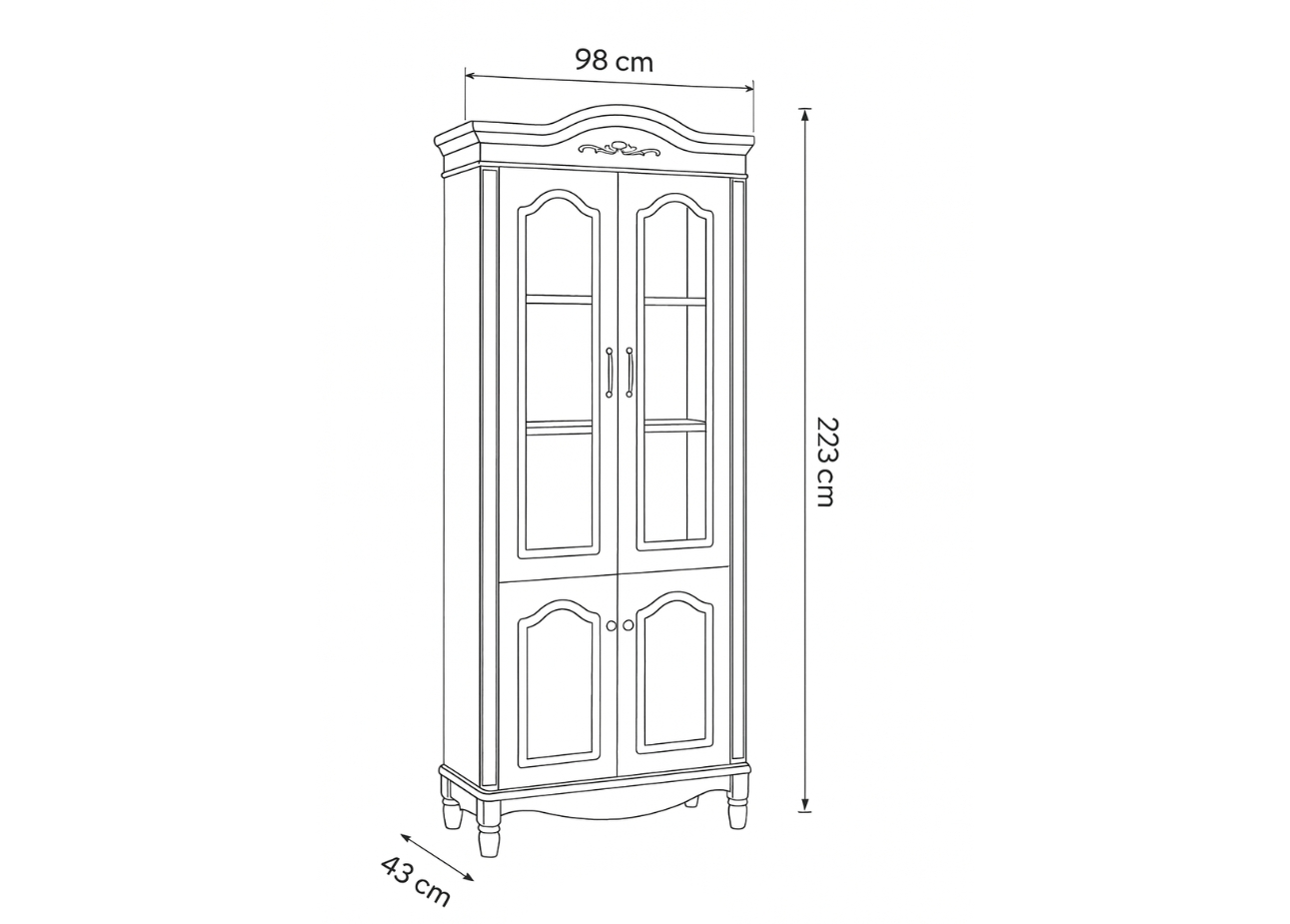 Regał Beatrice w stylu angielskim to wyjątkowy mebel, który łączy w sobie elegancję i funkcjonalność, doskonale uzupełniając wystrój salonu, jadalni czy gabinetu. Wykonany z płyty MDF oraz drewna, charakteryzuje się trwałością i solidnością, a jego subtelny odcień złamanej bieli wprowadza do wnętrza świeżość i harmonię. Przeszklona górna część regału pozwala na piękną ekspozycję dekoracyjnych elementów, takich jak porcelana, szkło czy rodzinne pamiątki, dodając wnętrzu lekkości i szyku. Dolne, zamykane szafki są idealne do przechowywania rzeczy, które nie muszą być widoczne na co dzień, takich jak zastawa stołowa, dokumenty czy tekstylia. Regał Beatrice wyróżnia się finezyjnym wykończeniem, delikatne zdobienia, frezowania oraz stylowe uchwyty podkreślają angielski charakter mebla, a profilowany gzyms dodaje całości elegancji. Regał ten nie tylko pięknie komponuje się z wnętrzami w stylu klasycznym, ale również świetnie współgra z aranżacjami np. prowansalskimi, wprowadzając do nich nutę romantyzmu i ponadczasowej estetyki. Dzięki pojemnym półkom i funkcjonalnej konstrukcji, mebel ten pomoże zorganizować przestrzeń, jednocześnie stając się stylowym elementem każdego domu.