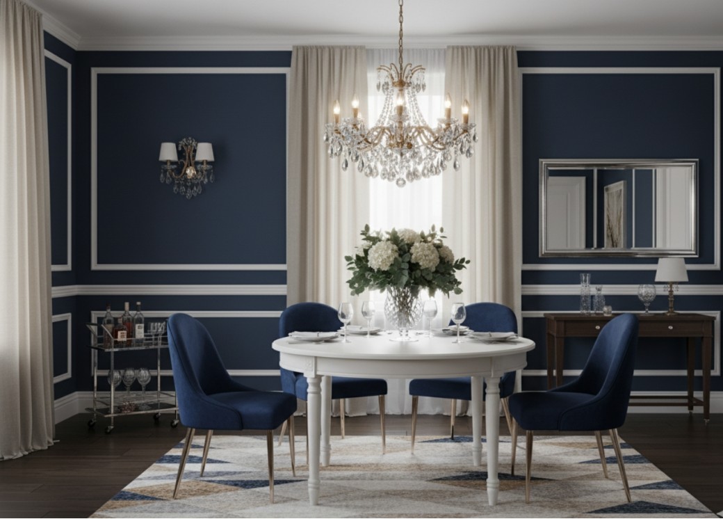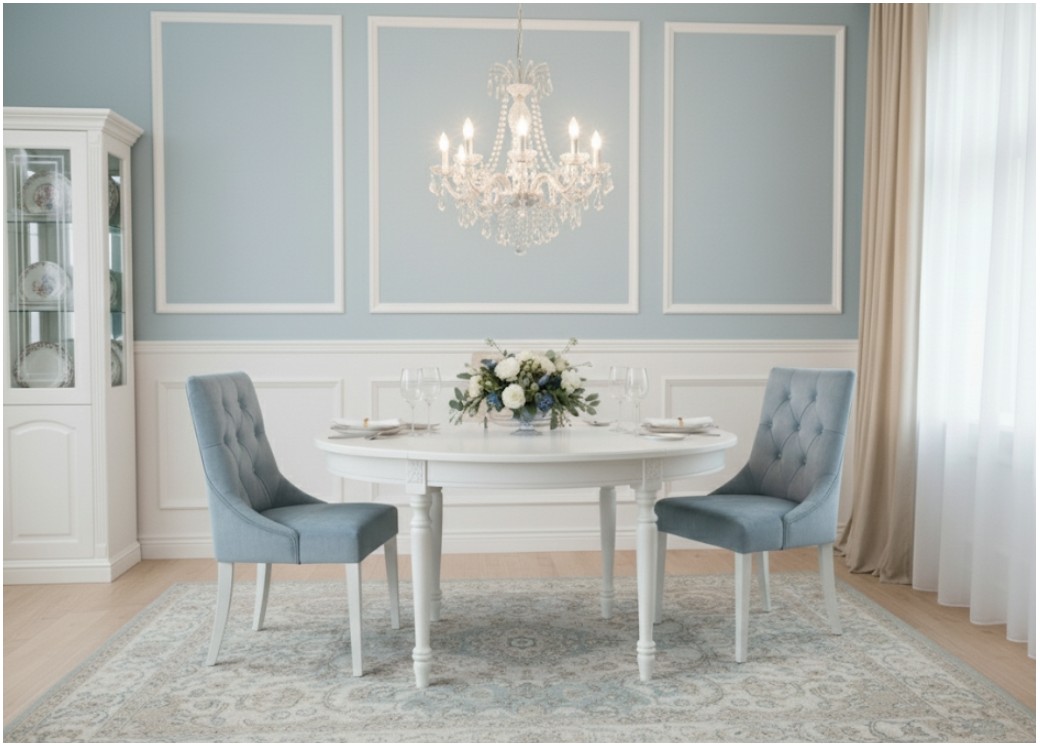 Serce kolekcji stanowią przeszklone witryny, zarówno wysokie, jak i niskie, zwieńczone gzymsami zdobionymi misternymi sztukateryjnymi elementami. To idealne miejsce, by wyeksponować rodzinne pamiątki czy kolekcję porcelany. Stół jadalniany wraz z eleganckimi krzesłami stanie się centrum rodzinnego życia, gdzie będziecie dzielić nie tylko posiłki, ale i najcenniejsze chwile.