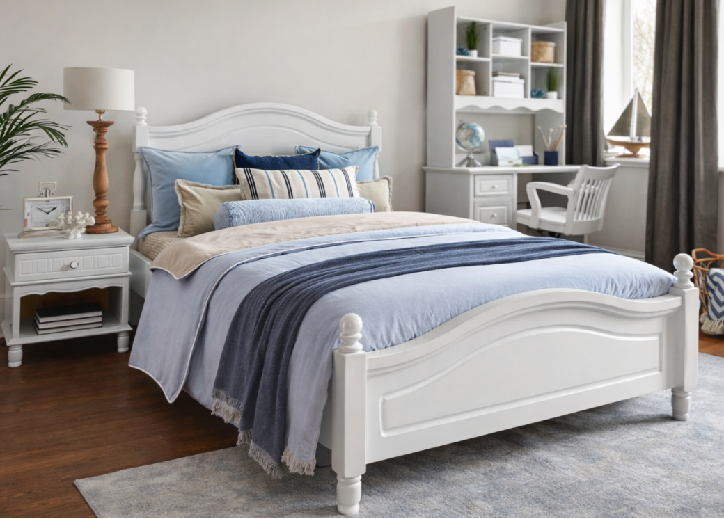 Lakierowane na odcień złamanej bieli łóżko Noel doskonale sprawdzi się zarówno w sypialniach urządzonych w stylu klasycznym, jak i w nowoczesnych wnętrzach, wnosząc do nich harmonię i świeżość. Prosta, a zarazem wysublimowana forma sprawia, że łóżko Noel to nie tylko praktyczny mebel, ale także ozdoba pomieszczenia, która tworzy idealną przestrzeń do odpoczynku.